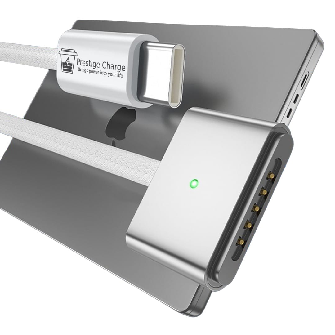 Cablu de Incarcare Magsafe 3, PRESTIGE CHARGE, pentru Apple Macbook Air / Pro, 140W, PD 3.1, Indicator LED, Textil Rezistent, 2m, Alb