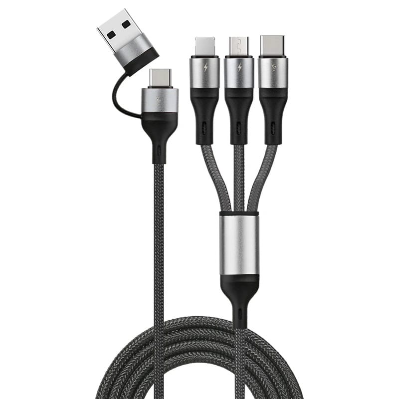 Cablu incarcare 6 in 1, PRESTIGE CHARGE, FastCharge 30W , USB & USB-C la USB-C & LIGHTNING & MICRO-USB, 1.2m, negru, universal