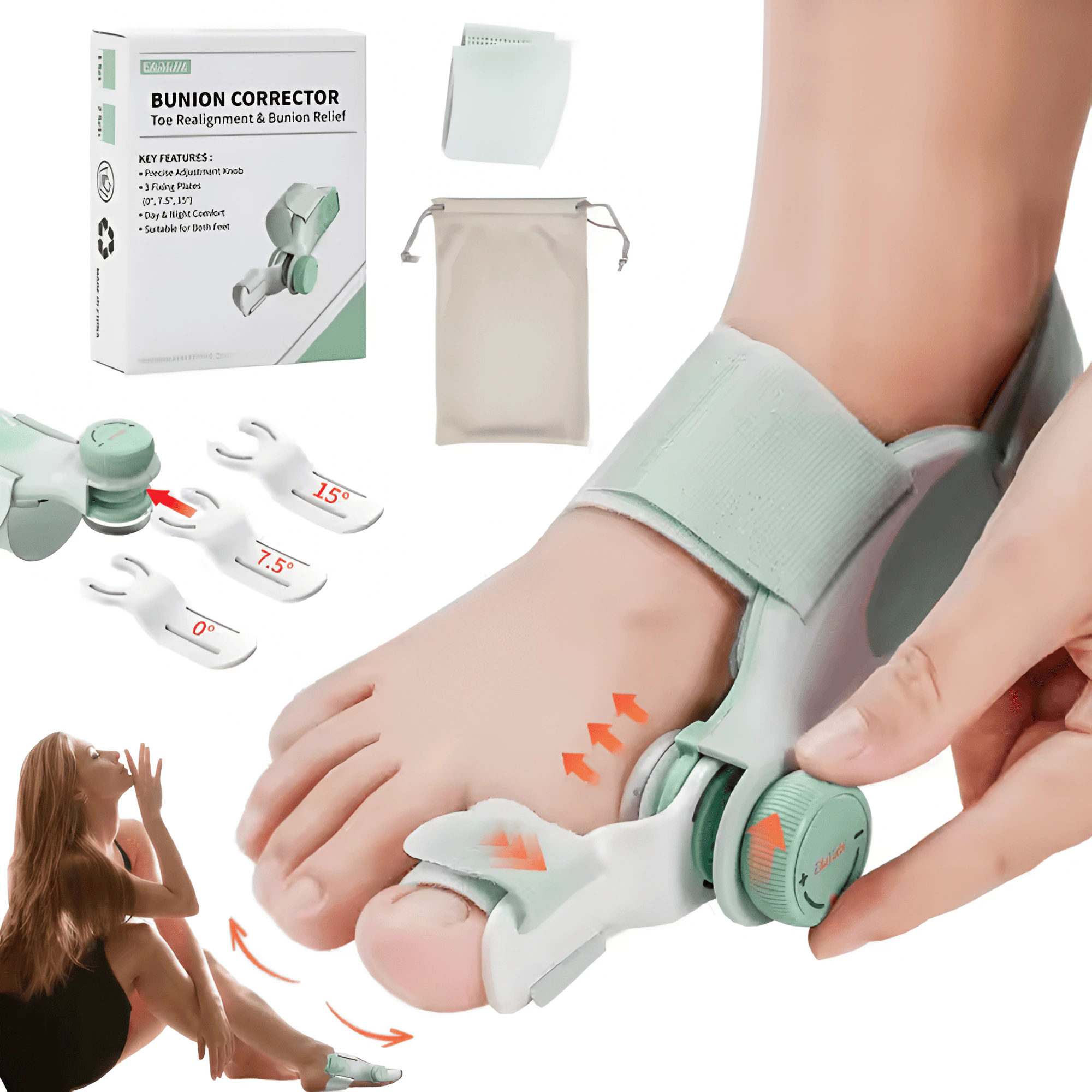 Corector Hallux Valgus Reglabil cu 3 Unghiuri De Corectie, Orteza Monturi Picior cu Reglaj prin Buton, Separator Silicon Medical Hipoalergenic, Orteza