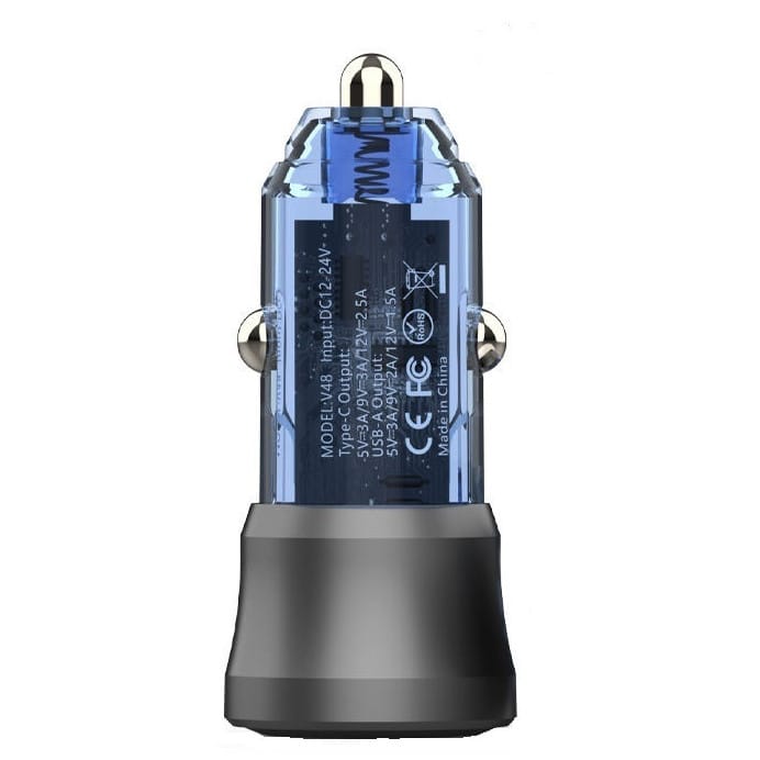 Poate fi folisit pentru incarcarea oricarui device ce functioneaza cu USB, microUSB, USB-C, Lightning etc Compatibil cu orice model de telefon, tableta Specificatii tehnice Tensiune de intrare: 12/24 V Tensiune de iesire port Type-C: 5V3A, 9V3A, 12V2.5A Tensiune de iesire port USB-A: 5V3A, 9V2A, 12V1.5A Iesire: 1 xUSB-C + 1 xUSB-A Culoare: negru + albastru transparent