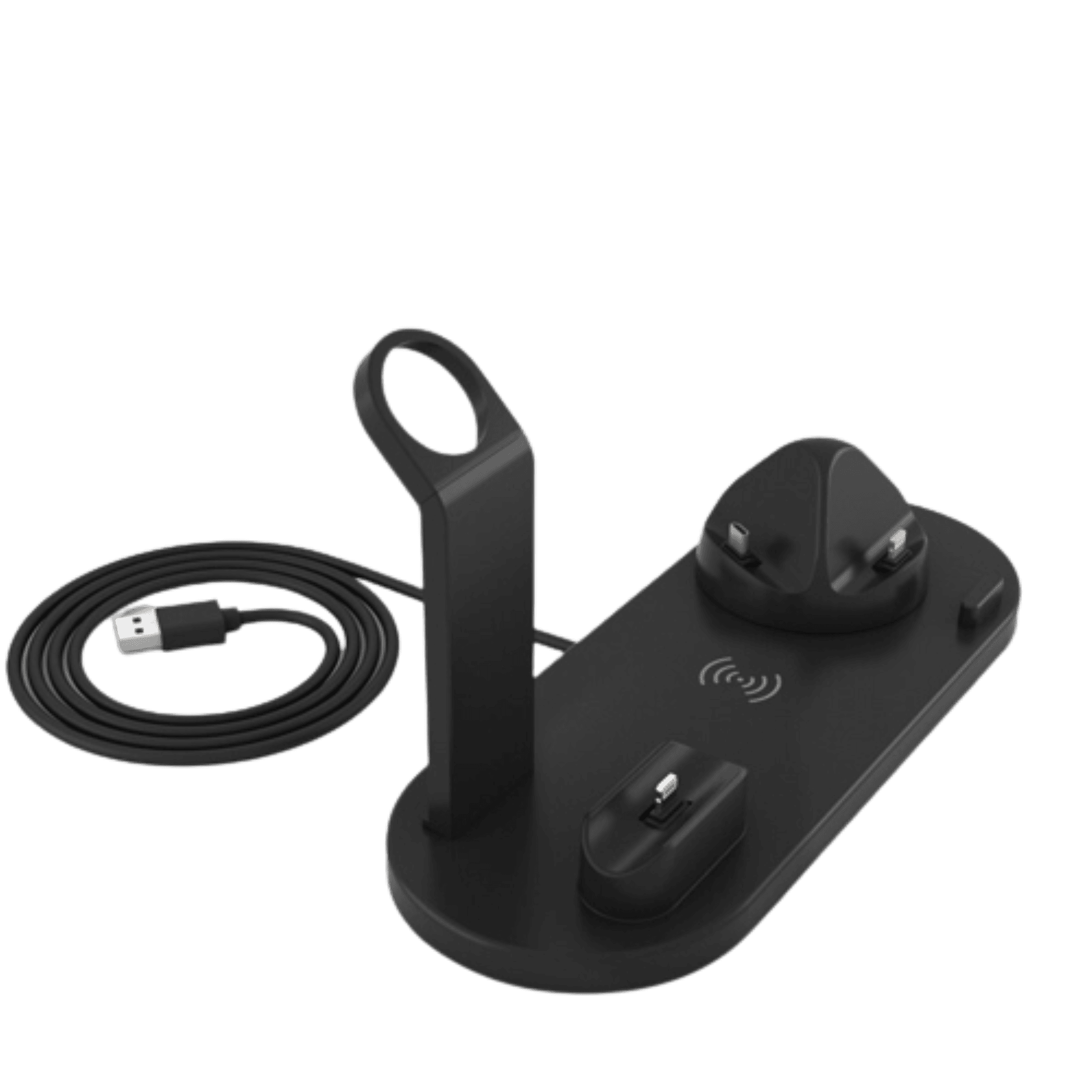 Încărcător wireless 4 în 1, 10W, telefon, ceas, căști, negru – ZEQAS