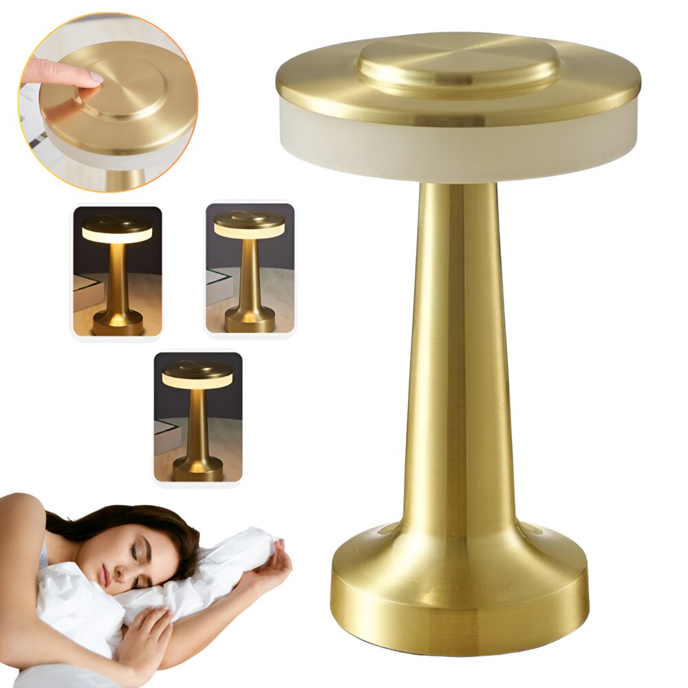 Lampa De Masa LED Wireless Portabila cu Port USB Si acumulator 1800mAh, control Tactil, Autonomie Pana la 180h, 3 Moduri Luminozitate Reglabila, Cald, Neutru, Rece, Design Modern, Metal ABS, Auriu Descriere Produs Lampa de masa wireless LED aduce un plus de functionalitate si eleganta in orice incapere. Construita din metal si ABS de calitate, pastreaza aspectul modern in timp si se potriveste perfect pentru dormitor, birou, sufragerie sau cafenea. Autonomia impresionanta si functiile inteligente o transforma intr-o alegere practica pentru utilizarea zilnica si pentru situatii de urgenta. Beneficii Principale Design fara fir cu port USB pentru incarcare rapida Baterie reincarcabila 1800mAh cu autonomie pana la 180 ore 3 moduri de luminozitate: calda 2000K, neutra 4500K, rece 6000K Control ON/OFF tactil si reglaj continuu al intensitatii luminii Material metal + ABS rezistent, durabil si usor de intretinut Portabila si versatila – potrivita pentru casa, birou sau cafenea Cadou ideal pentru aniversari, petreceri sau casa noua Specificatii Produs Tip produs: Lampa de masa LED wireless Alimentare: Baterie reincarcabila 1800mAh Autonomie: intre 12h si 180h in functie de luminozitate Timp incarcare: 3 – 5 ore Temperaturi lumina: 2000K calda, 4500K neutra, 6000K rece Functii: reglaj intensitate, control tactil ON/OFF Conector: port USB Material: Metal + ABS Utilizare: dormitor, birou, sufragerie, cafenea, bar, hotel Instructiuni De Utilizare Conectati lampa la incarcatorul USB pentru 3-5 ore pentru incarcare completa Apasati butonul ON/OFF pentru pornirea sau oprirea lampii Selectati modul de lumina: cald, neutru sau rece Tineti apasat butonul pentru a regla continuu intensitatea luminii Folositi lampa oriunde doriti datorita bateriei integrate si designului wireless